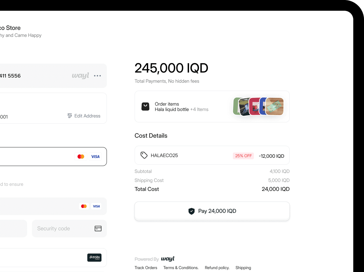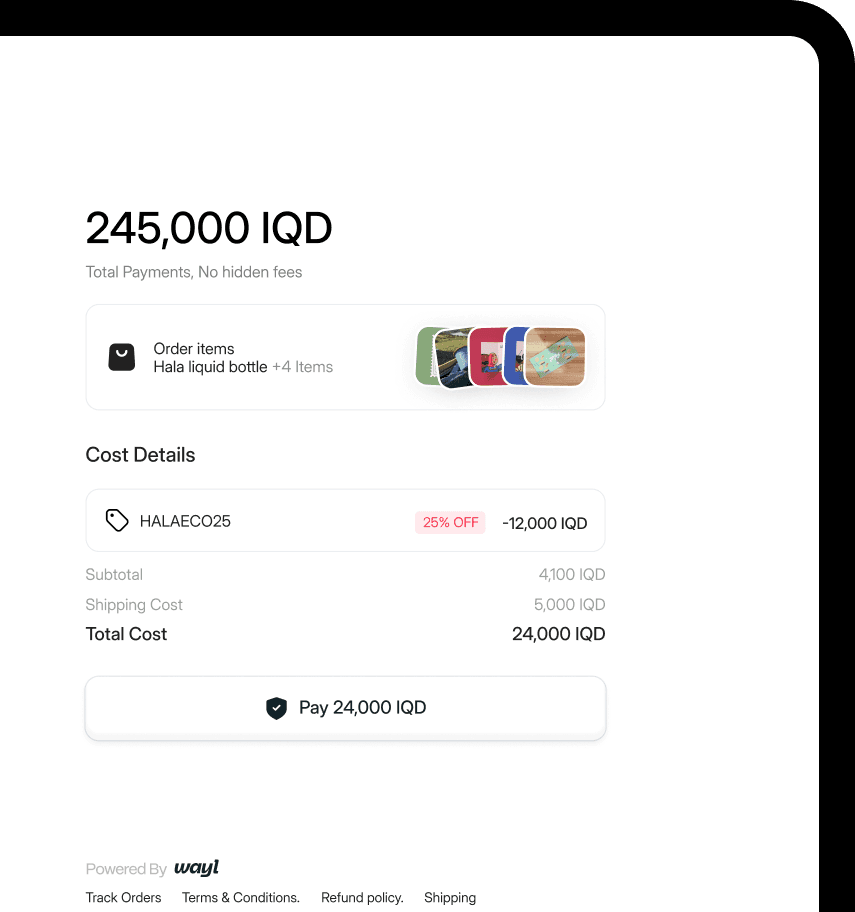 يفتخر Wayl بكونه اسرع طريقة يمكنك اطلاق مشروعك بها في العراق او تمكين مشروعك من قبول مدفوعاتك الالكترونية خلال ٢٤ ساعة.